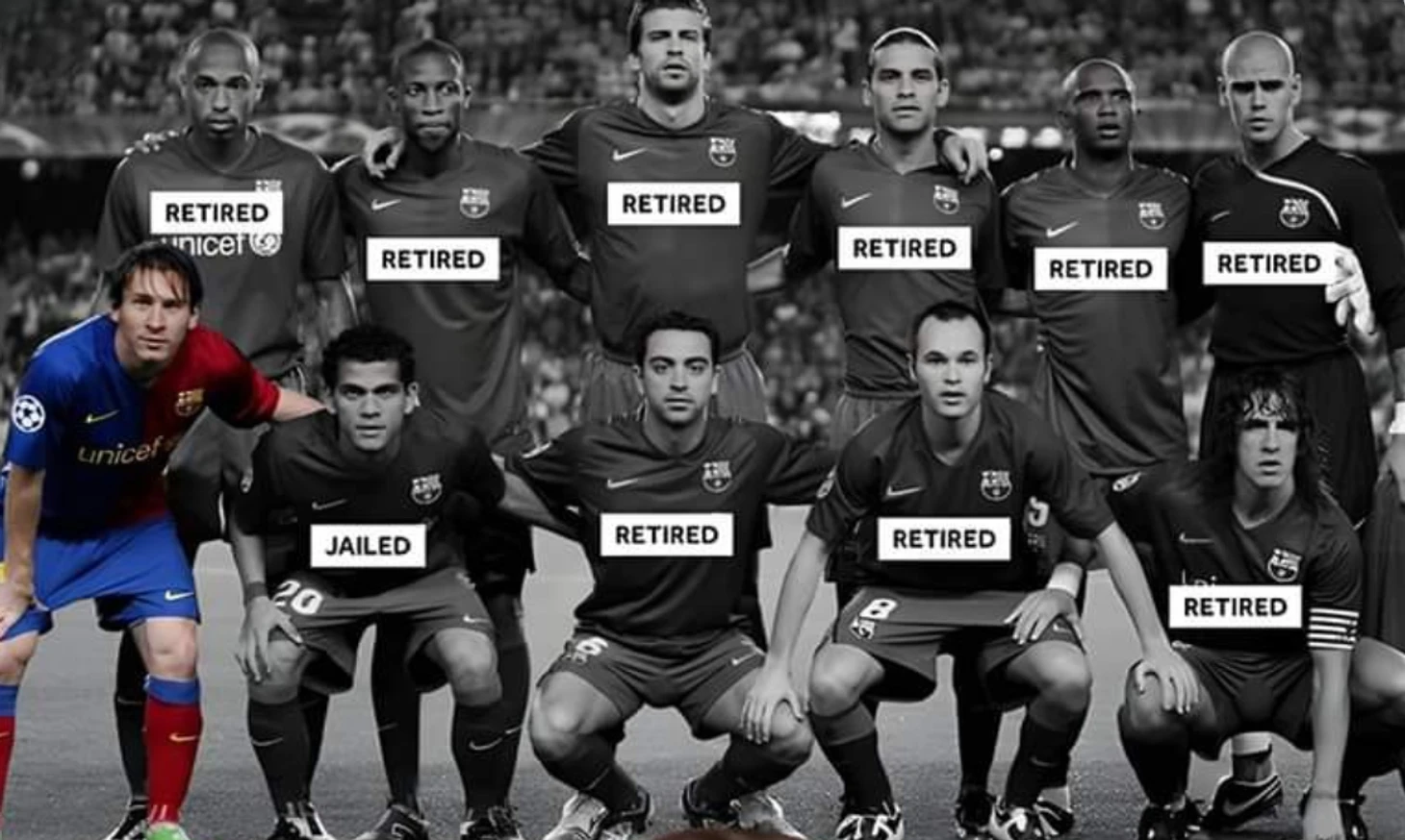 Почти все вышли на пенсию и занимаются бизнесом. Рафа Маркес и Хави – тренеры. Пике – развивает медиалигу. Дани Алвес – судим. Анри пытается тренировать, но основная деятельность – ТВ-эксперт. На скамейке остались Педро и Серджи Бускетс, выступающие сейчас за «Лацио» и «Интер Майами».