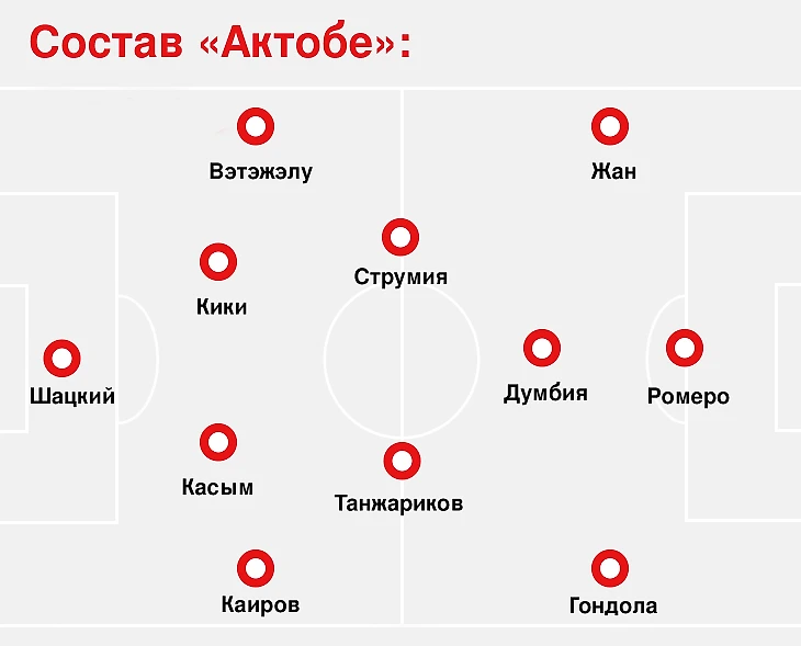 До пропущенного гола «Актобе» играл вторым номером. Позиционные атаки «Кайрата» не принесли результат, а «красно-белые» дважды забили после контратак.