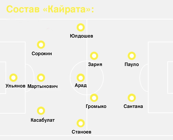 Среди игроков «Кайрата» лучшими были Офри Арад и Элдер Сантана. Бразильца постоянно критикуют за результативность, но его польза на поле очевидна: 23 возврата, 20 выигранных единоборств (больше всех в матче), 3 отбора. Элдер уравновешивает несбалансированную группу атаки «Кайрата», в прошедшем матче Сантана вступил в 45 единоборств (ближайший преследователь – Струмия с 26 единоборствами).