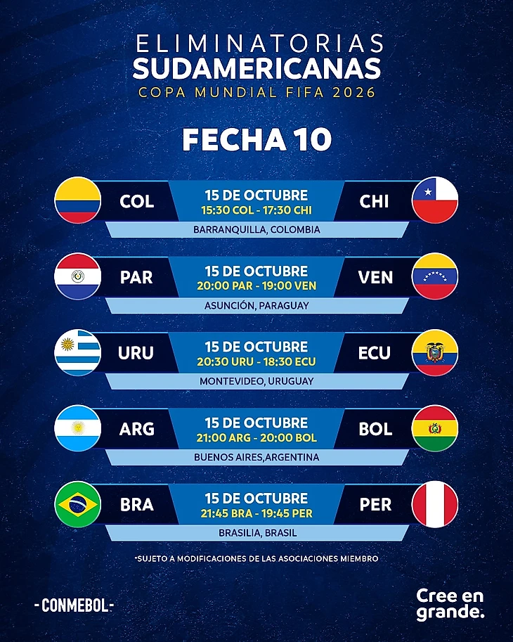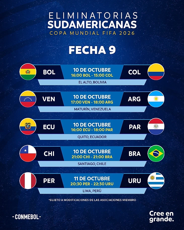 Матч против Уругвая состоится 11 октября в 20:30 по перуанскому времени (12 октября 4:30 утра по московскому времени). Против Бразилии сыграют 15 октября в 19:45 по перуанскому времени (16 октября 3:45 утра по московскому времени).