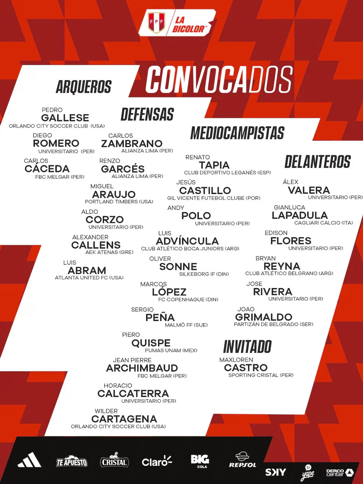 Вернулись в сборную два игрока «Университарио». Это нападающий Хосе Ривера и полузащитник Горацио Калькатерра. Если для Риверы этот сезон прорывной, он даже ездил на Кубок Америки, то Калькатерра вызван впервые с 2022 года: он был в составе сборной в стыковых матчах к чемпионату мира 2022 года. Впрочем, в игре против Австралии он остался в запасе. Вызов этих игроков сейчас также связан с тем, что они хорошо знакомы Хорхе Фоссати – уругваец был главным тренером «Университарио» в прошлом сезоне. Таким образом, к предстоящим матчам было вызвано 8 игроков «Университарио», что делает его клубом с наибольшим представительством в составе сборной Перу.