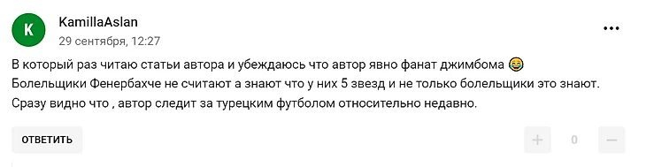 А еще пять звезд «Фенербахче» постоянно вызывают бурные дискуссии в комментариях к любой новости, где они фигурируют в тексте или визуально. Например, стоило мне в недавнем обзоре тура использовать следующую формулировку: «больная тема для болельщиков «Фенербахче», считающих, что звезд у их клуба должно быть пять», как сразу появился комментарий, обличающий меня в симпатиях «Галатасараю».