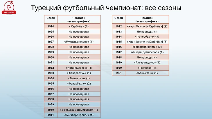 Таким образом, в Турции в 1940-1950 гг. существовало два главных футбольных турнира параллельно: Турецкий футбольный чемпионат и Национальный дивизион.