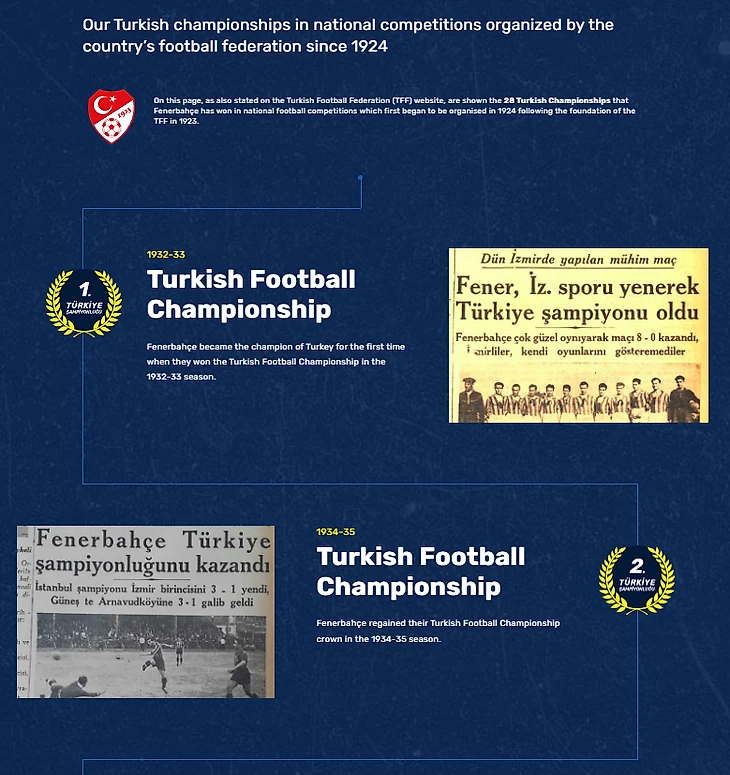 «Фенербахче» стал чемпионом Турецкого футбольного чемпионата три раза: в 1933 г., 1935 г. и 1944 г.