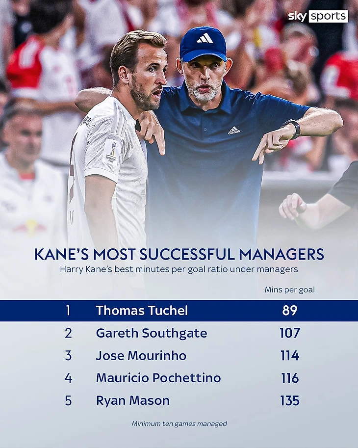 Под руководством немецкого специалиста англичанин забивал каждые 89 минут – больше, чем при любом другом тренере. При Саутгейте Кейну было необходимо 107 минут, чтобы забить.