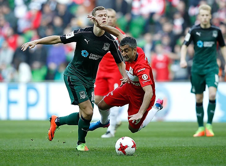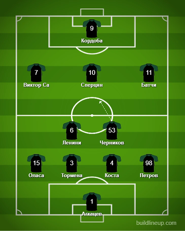 Чёрно - зелёные не будут играть привычным первым номером. Вспоминая, предыдущие матчи Краснодара приходит на ум высокий прессинг, игра в атаку, создание большого количество моментов. Но в связи с тем, что Спартак любят играть в так называемую свою игру, к которой мы перейдём позже, то скорее всего быки будут играть на пространстве. Учитывая слабость флангов защиты красно-белых, то Са и Батчи будут главным козырем на этот матч, но не стоит забывать про Кордобу, который может где-то хитро перехватить мяч. И также думаю, что Краснодар не будет активно прессинговать, выжидая ошибки Спартака при владении мячом.