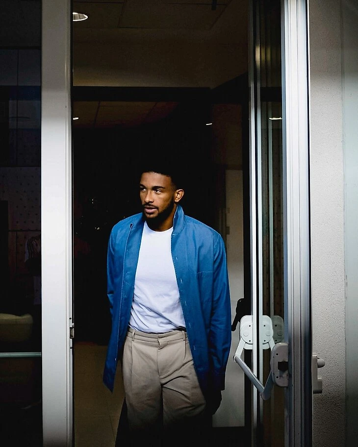 На зиму готов ромбовидный стеганый бомбер, сшитая вручную рубашка из ткани Double, водолазка из мериносовой шерсти, свободные брюки и мокасины с подошвой из натурального каучука. Все изготовлено на заказ и из премиальных тканей.