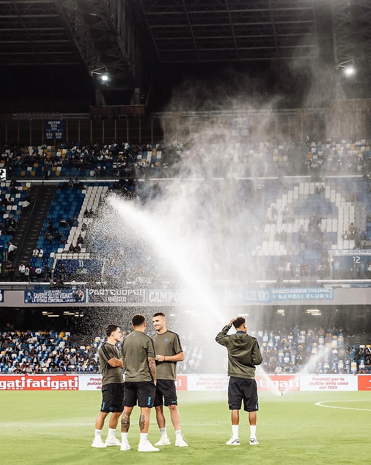 «Наполи» в этом сезоне ездит на матчи в спортивной экипировке от бренда Армани EA7.