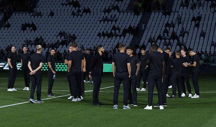 В этом игроки получили черный костюм в сочетании с футболками. А еще шапки с надписями Boggi.