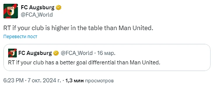 Забавно, но после этой победы (поскольку матч был пятничным и самым первым в туре) «Аугсбург» на время подпрыгнул в таблице настолько высоко, что даже позволил себе потроллить «Манчестер Юнайтед».