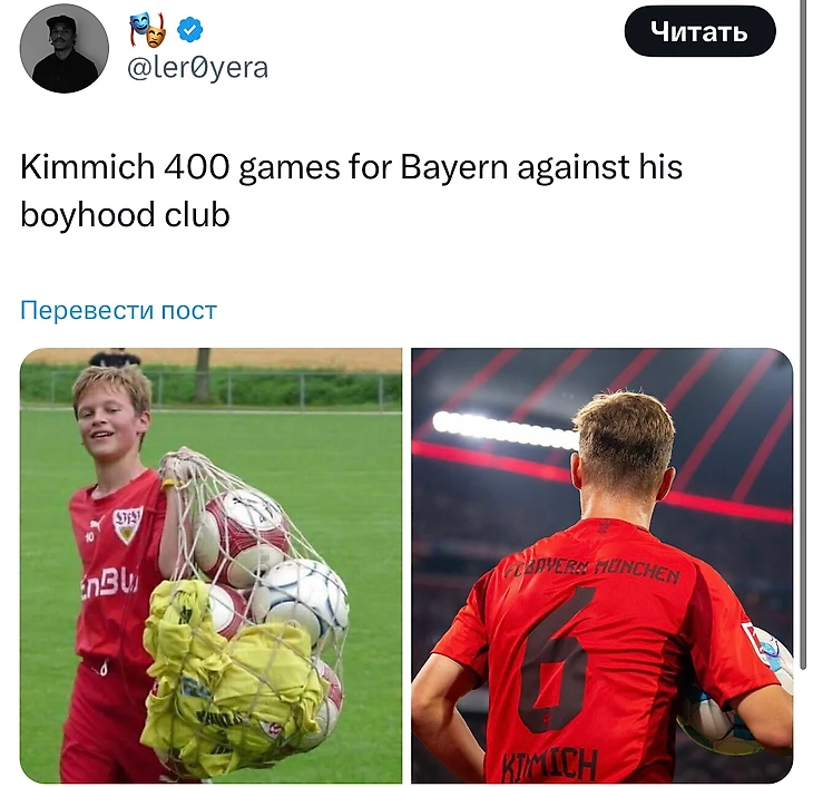 Встреча со «Штутгартом» особенно запомнится Йозуа Киммиху. Для полузащитника игра стала 400-й в футболке «Баварии», он дебютировал за мюнхенцев почти десять лет назад – в 2015-м году.