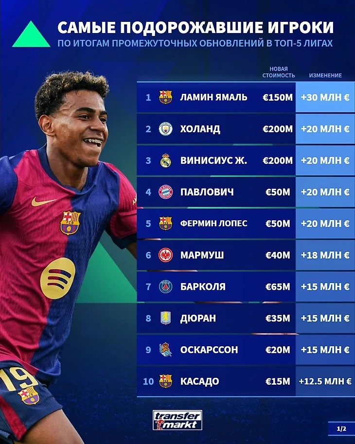 Омар Мармуш и Александер Павлович в топе самых подорожавших игроков топ-5 лиг по версии Transfermarkt!