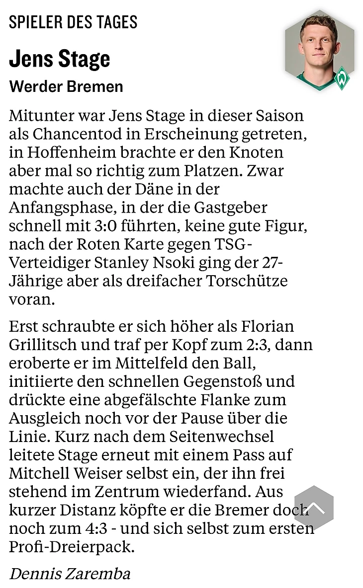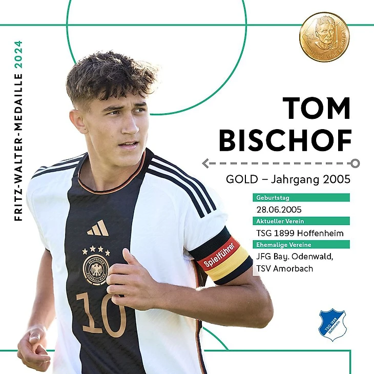 И еще один повод для радости. 19-летний полузащитник «Хоффенхайма» Том Бишоф был награжден золотой медалью Фрица Вальтера от Немецкого футбольного союза среди игроков 2005 года рождения.