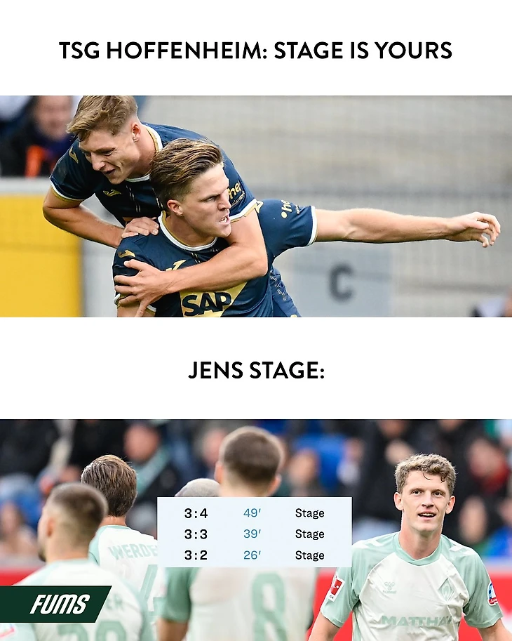 В пятом туре «Хоффенхайм» принимал «Вердер» и это был настоящий триллер! «Деревенские» разносили «Вердер» в начале матча и к 12-й минуте уже вели со счетом 3:0 (!), но кто бы мог подумать, что удаление Стэнли Нсоки на 18-й минуте так сильно скажется на хозяевах? «Хоффе» отдал мяч и буквально посыпался – уже в первом тайме на табло красовались 3:3, а в начале второго тайма «Вердер» забил четвертый мяч. Вот уж кто короли камбэков!