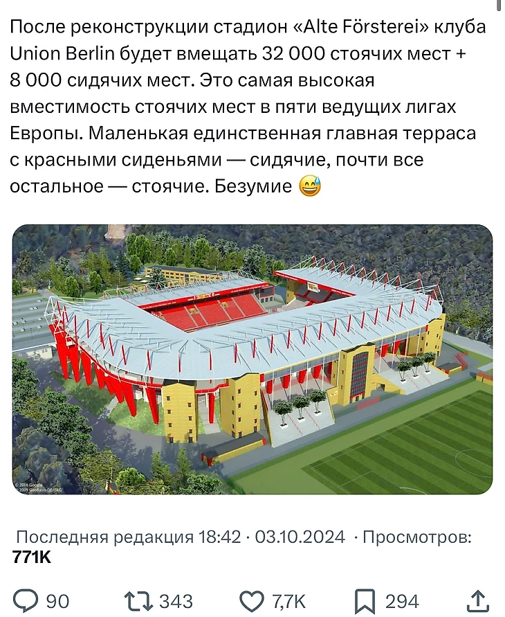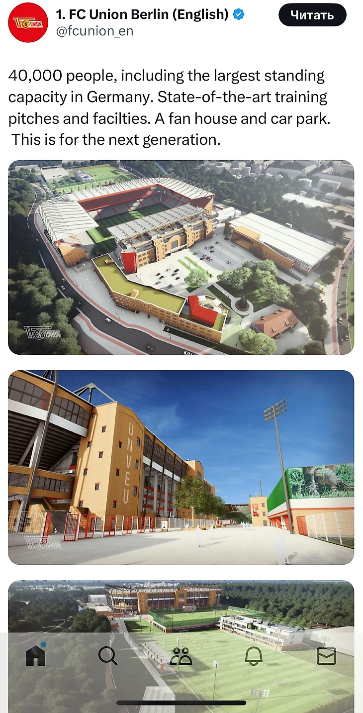 А еще, кстати, стало известно, что «Унион» собирается перестроить свой стадион и увеличить его вместимость аж до 40 000 мест – а это де-факто половина дортмундского «Вестваллена»! Клуб даже показал макет реконструкции в твиттере: