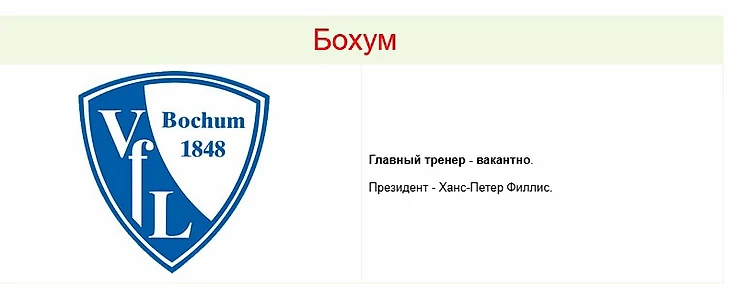 «Бохум» уверенно идет ко дну, хотя по игре команда не выглядит безнадежно. Тем не менее, невезение и нехватка характера привели к тому, что после серии из трех поражений в отставку был отправлен главный тренер Петер Зайдлер.