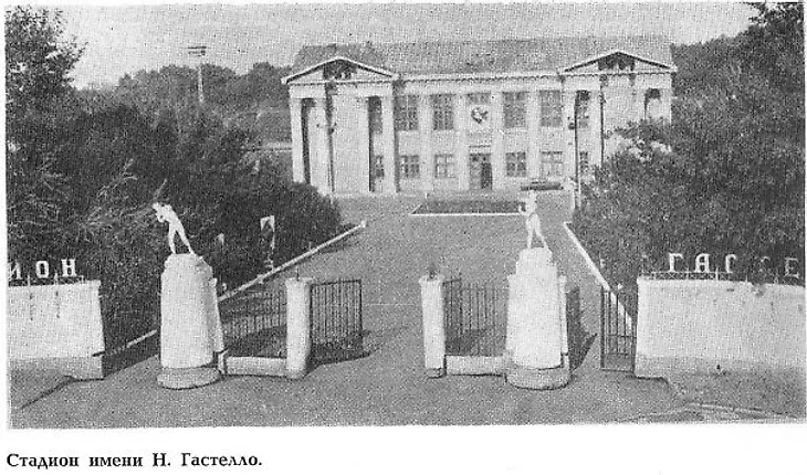 Здание стадиона построено в 1955 году в стиле неоклассики по проекту архитектора В.А. Кондрашкова. В 1985 году у входа на стадион был открыт памятник Н.Ф. Гастелло, позднее перенесен в сквер.