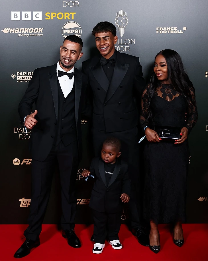 На праздник футбола имени France Football Ямаль прибыл не только с отцом-агентом, но и с мамой и младшим братом. Она появляется на фото с сыном не так часто, поэтому можно сказать, что семейные фото в полном составе очень редки и нам повезло.