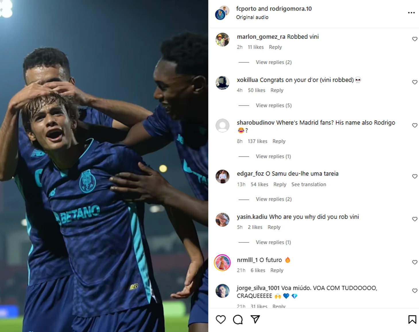 Фанаты Вини даже устроили огонь по своим! Родриго Гоэсу пришлось страдать от наплыва комментаторов вместо тезки.