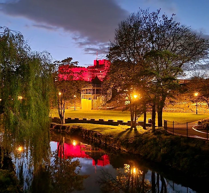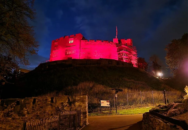 Замок Тамворта, остаток средневекового величия, был освещен в красный цвет команды в честь чемпионства-23/24.