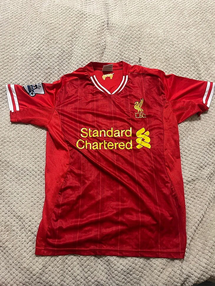 Вот что было дальше - вопрос - то ли АПЛ перестали показывать по бесплатным каналам, то ли я углубился в плавание и подзабил на просмотр футбика, то ли еще что-то. Но то-то и оно - именно когда я перестал активно смотреть, «Ливерпуль» попер, сначала пара офигенных сезонов с Роджерсом и то самое падение Джеррарда, а потом и Клопп пришел, короче за «Ливер» стало болеть нестыдыно. Мою ливерпульскую майку зацените - 2013 года вроде.