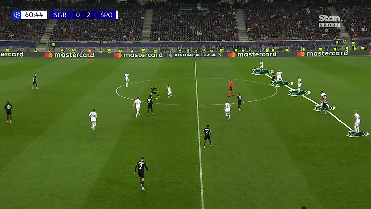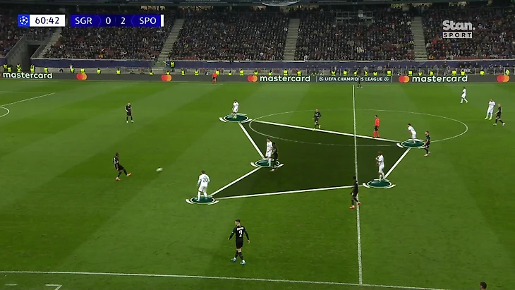 Даже в этом сезоне, когда «Спортинг» доминирует на мяче и в матчах, они дают соперникам дышать при розыгрышах. Уровень давления зависит от стиля и слабых сторон оппонента, но совсем не обязан быть взрывным. Самое комфортное состояние для команды Аморима – оборона в среднем блоке с закрытым центром и слаженной пятеркой сзади.