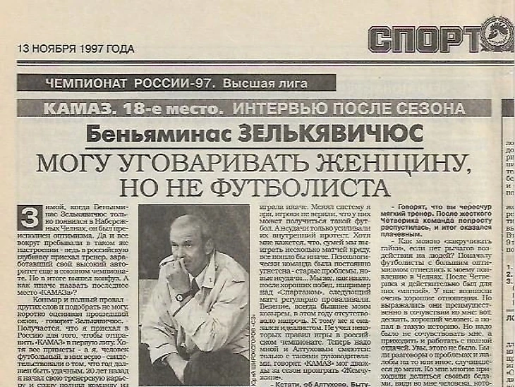 Последний сезон «КАМАЗа» в Высшей лиге: Зелькявичюс, победы над «Зенитом», «Спартаком» и «Аланией», 18-е место