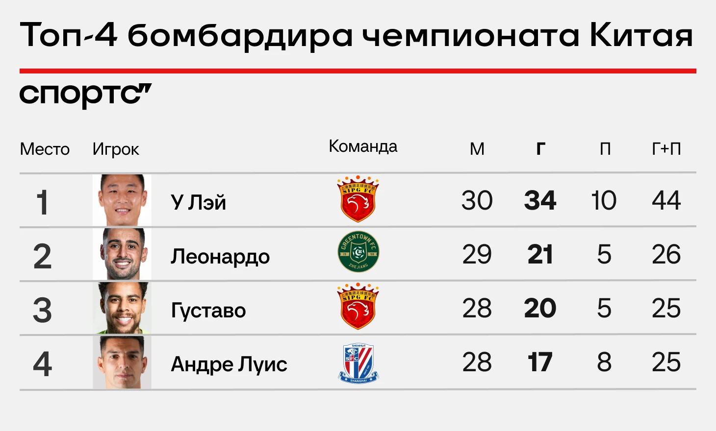 При этом У Лэй вообще не бьет пенальти. Для сравнения: у Оскара с 11-метровых шесть голов, почти половина.