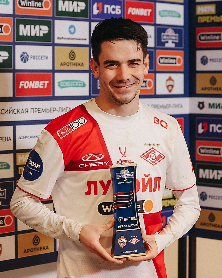Встреча, которая прошла в субботу на столичной «ВЭБ Арене», завершилась со счетом 2:0 в пользу «красно-белых». С передач Пруцева футболисты «Спартака» Тео Бонгонда (45-я минута) и Хесус Медина (90+8) отметились забитыми мячами. Премия «Лучший игрок матча» вручается после каждой игры РПЛ, лауреаты выбираются совместно лигой и телеканалом МАТЧ ПРЕМЬЕР.