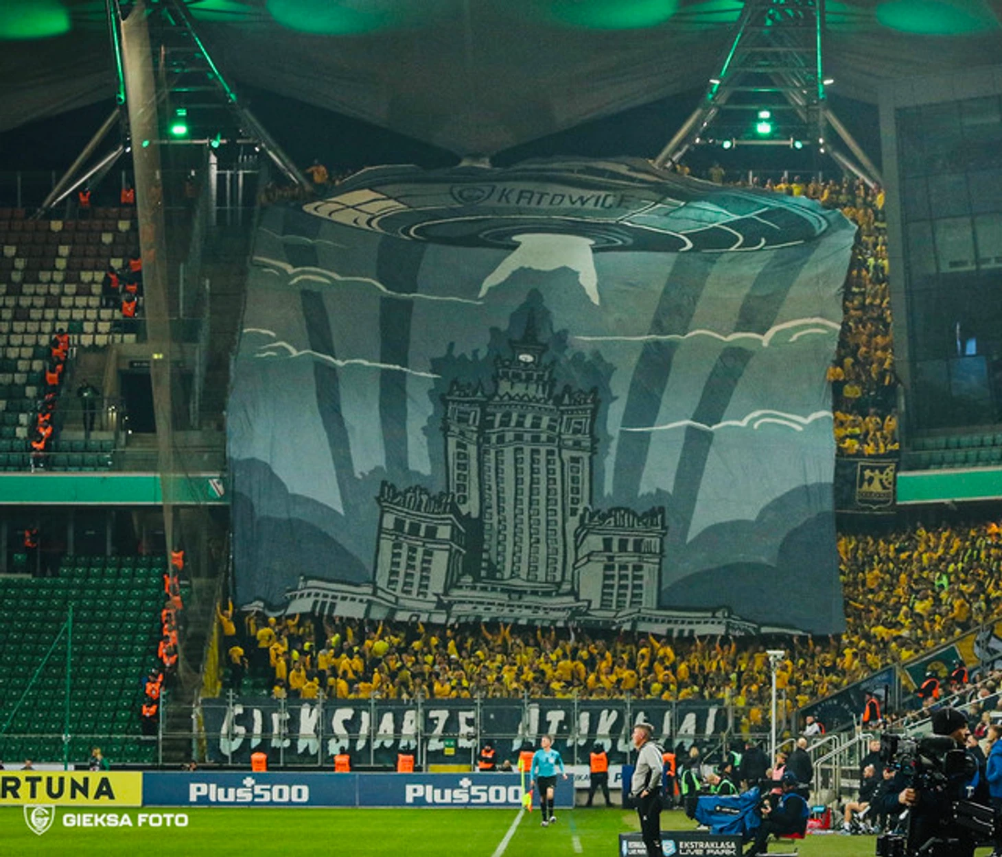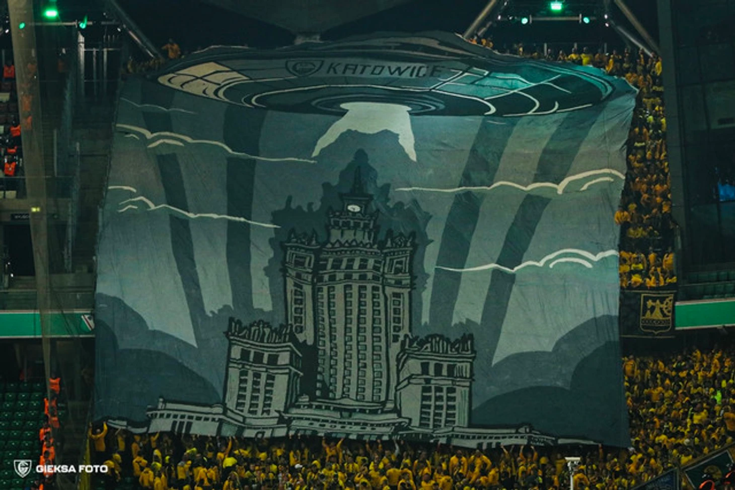 В качестве перфоманса на этой встрече болельщики клуба из Катовице презентовали баннер с подписью «ГиеКСовцы атакуют!», на котором НЛО с изображением логотипа клуба на борту завис над зданием, которое внешне очень напоминало что-то среднее между сталинской высоткой и главным зданием МГУ. На самом деле это дворец культуры и науки в Варшаве – здание было подарено Польше Советским Союзом в 1955 году, хотя сама постройка была возведена на общие деньги.