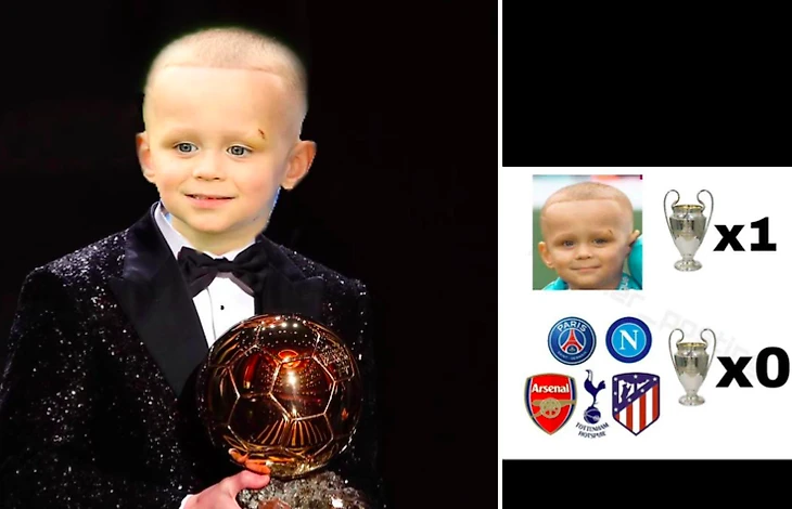 Прикол со сравнением трофеев ЛЧ у Ронни и «Наполи», «ПСЖ», «Арсенала», «Тоттенхэма» и «Атлетико» тоже завирусился. Кто-то даже прифотошопил Месси с «Золотым мячом» голову Ронни с намеком, что парень должен взять награду.