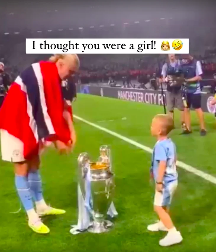 Камеры засекли забавный разговор с Холандом. Эрлинг праздновал с кубком, тут к нему подбежал сын Фодена и прокричал: «Хо-о-оланд!». Норвежец ответил: «Ро-о-о-онни!». Мальчик вдруг решил поделиться наблюдениями: «Я думал, ты девочка!». С намеком на вид сзади и длинные волосы форварда. Потом Ронни попытался утащить трофей, но одумался и куда-то убежал.