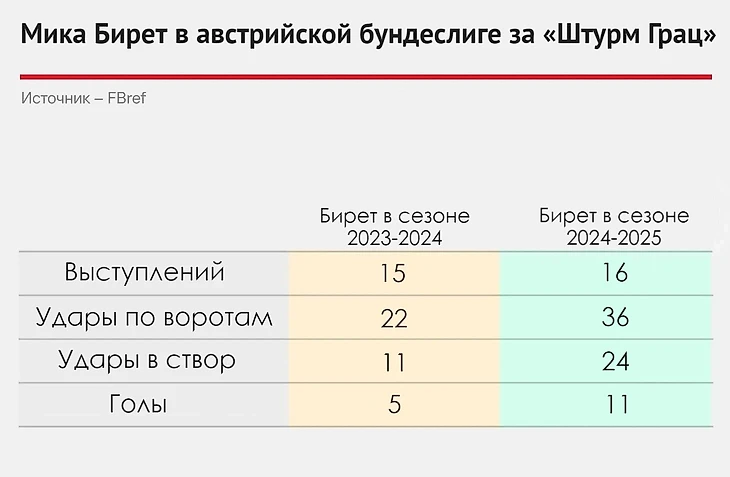 Французский клуб заприметил Мику Бирета, хорошо выступающего в австрийской Бундеслиге и имеющего как раз хорошую реализацию — 31% его ударов в чемпионате оказались голевыми и 25% в Лиге Чемпионов в этом сезоне.