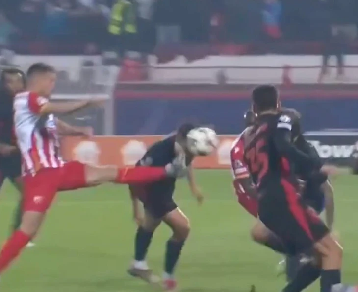 На 64-й минуте защитник Урош Спайич (тот самый, экс-«Краснодар») ударил шипами Кубарси прямо в лицо. Выглядело страшновато.