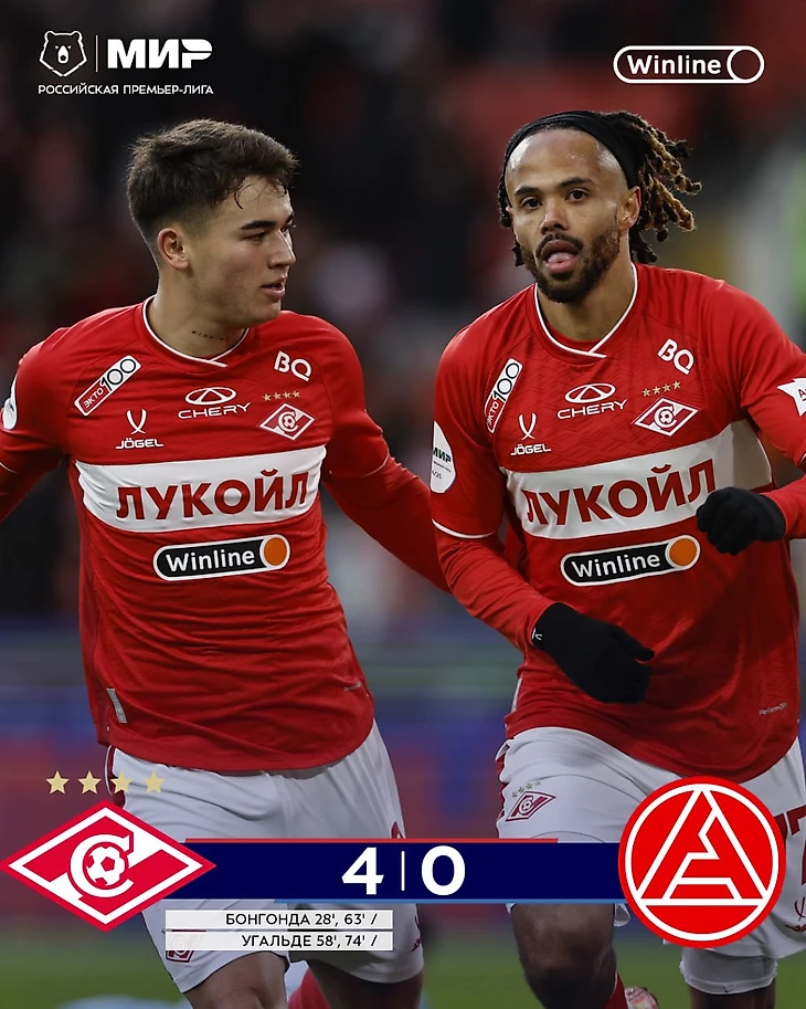 «Спартак» разгромил «Акрон», Бонгонда и Угальде забили по два гола