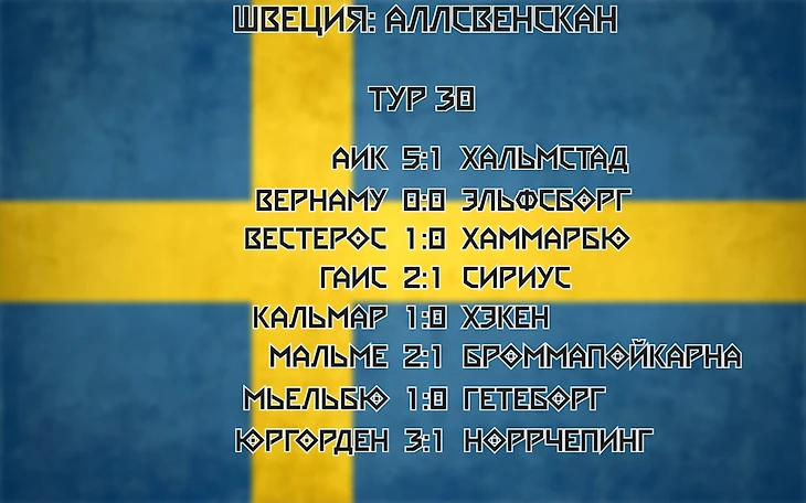● «Гетеборг» уступил, но остался в высшей лиге благодаря ничьей в матче с участием «Вернаму», которому требовалась победа для сохранения при данном результате.