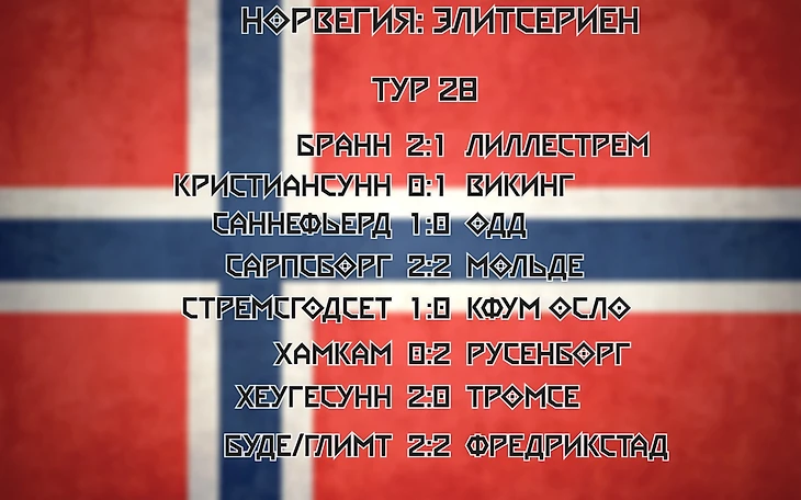 ● «Бранн» в гонке за чемпионство! С трудом, но удалось обыграть «Лиллестрем» благодаря пенальти на 93-й минуте. Впереди два тяжелейших матча, но сейчас клуб находится на первой строчке с преимуществом над «Буде» в два очка.