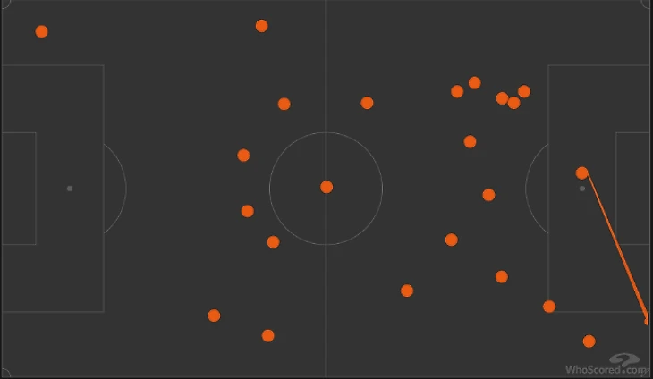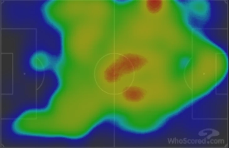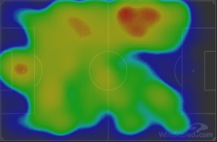 Хозяева играли по схеме 4-2-3-1 с сильным перекосом на левый фланг, по которому регулярно очень глубоко подключался Мазрауи и в эту зону смещался Бруну Фернандеш. Оттуда и пришло 2 гола. На тепловой карте тоже всё отчетливо видно. При таком перекосе, как ни странно, много активности было от правого вингера Диалло. Очень качественный матч провел Амад.