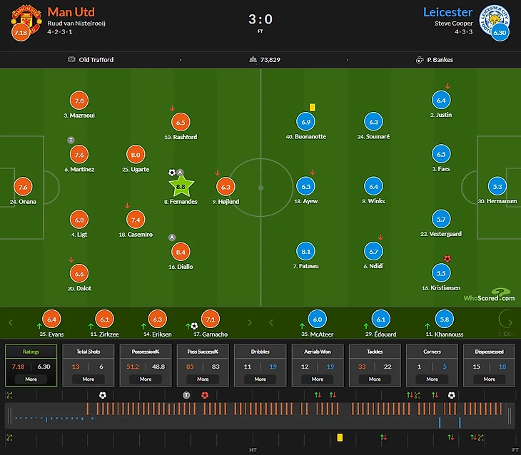 На 57й минуте ван Нистерлой сделал две перестановки - Эванс (провёл в стане лис 5 сезонов) вместо Далота и Гарначо вместо Рэшфорда (Маркусу матч совсем не удался).
