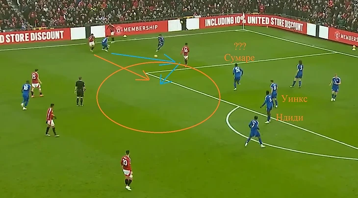 А дальше ошибся Сумаре. Француз не посчитал до трёх, именно столько было игроков «МЮ» при розыгрыше аута, а гостей всего двое. Пока Сумаре очнулся и пошёл на помощь, было уже поздно.