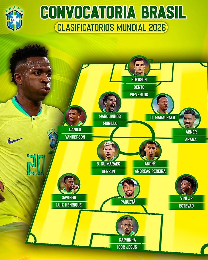 Вместо травмированных Милитао и Родриго вызваны Лео Ортис и Габриэл Мартинелли.