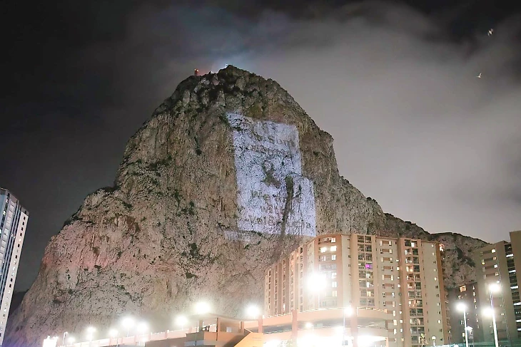 Гибралтар поддержал Валенсию огромной проекцией на скале. Её было видно со стадиона