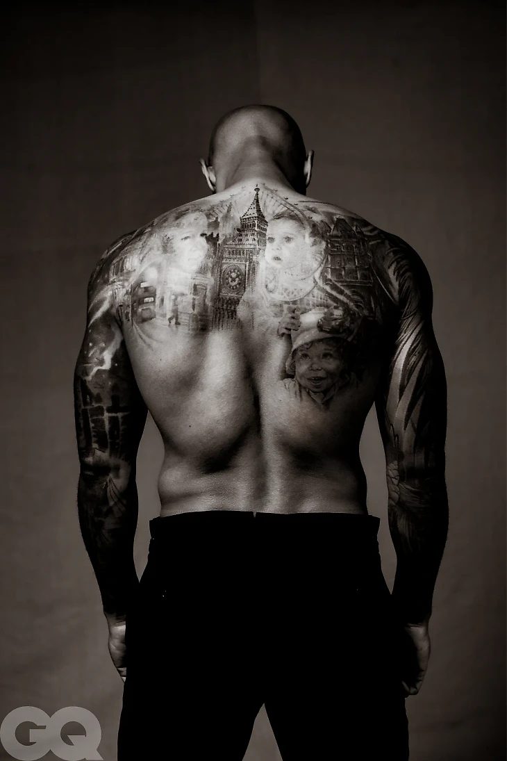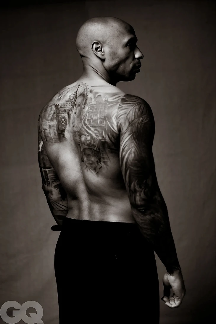 В фотосессии для французского GQ Тьерри Анри похвастался своими татуировками на спине.