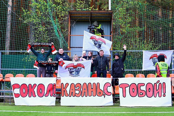Первое, что вспоминается через полгода после поездки – явное преобладание женщин и девушек в рядах тех, кто обеспечивал безопасность участникам матча и 75 зрителям. При «входе» на стадион, который за пару часов до начала игры обозначили фан-барьерами и табличками метрах в двадцати от крыльца гостиницы, посетителей встречали две тетушки бальзаковского+ возраста. На трибунах работали девчата помоложе, а в гостевой фан-сектор к полутора десяткам зрителей (включая, женщин, детей и официальных лиц клуба) в помощь к двум девушкам отрядили и юношу. Но поклонникам «Сокола» запомнился не стюард, а человек в форме, который запретил проносить на трибуну баннер, потому что он превышал размеры, установленные регламентом для такого рода средств поддержки. И полотно с надписью: «Сокол! Казань с тобой!» пришлось резать на три части.