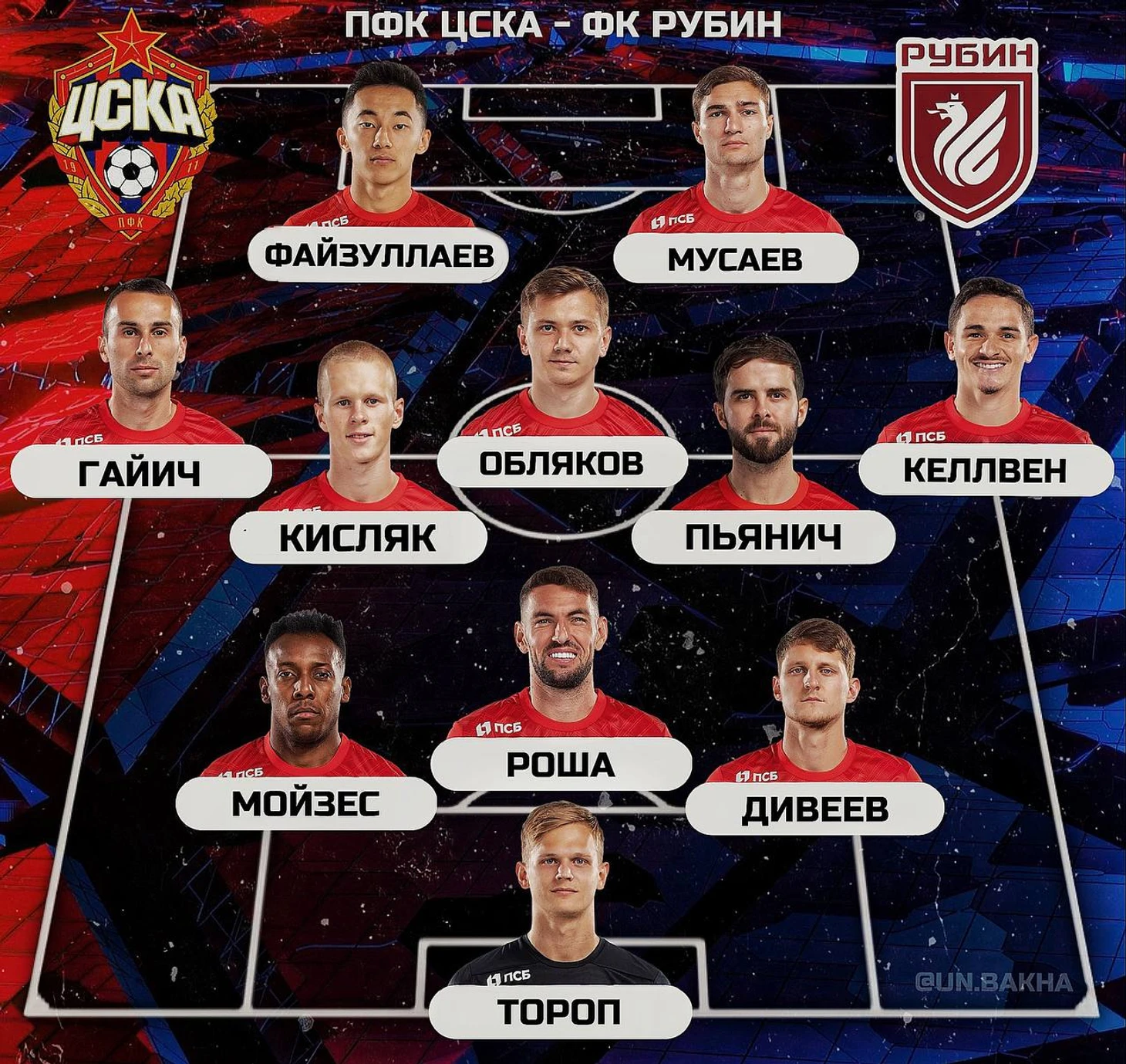 Армейцы вышли на игру в боевом составе. Команда вновь сыграла по новой схеме 3-5-2. Место в воротах занял Тороп, в защите сыграли Мойзес, Роша и Дивеев. В качестве латералей выступили Гайич и Келлвен. В центре полузащиты вышли Обляков, Кисляк и Пьянич, а на позиции центрфорвардов сыграли Мусаев и Файзуллаев.