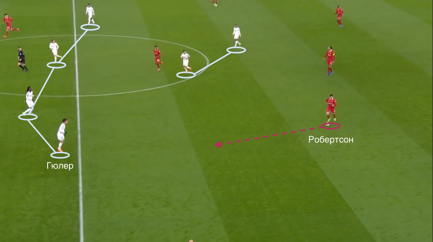 Это давало Робертсону больше пространства для движения с мячом. Кроме этого, шотландецу удавалось концентрировать на себе внимание не только Гюлера, но и Камавинги.