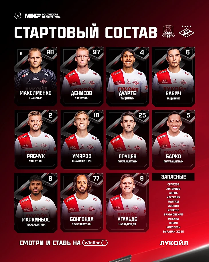 Состав «Спартака» на матч с «Краснодаром»