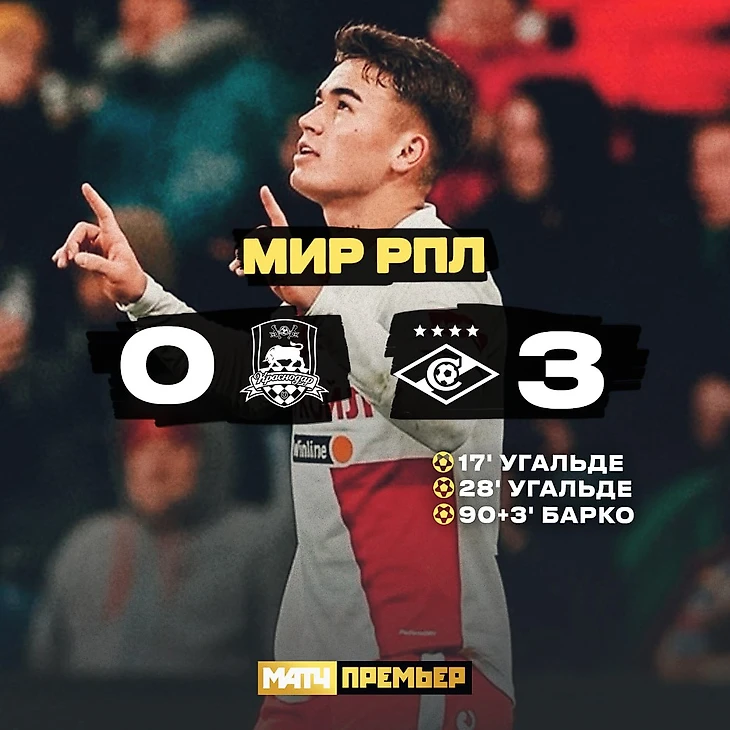«Спартак» взял реванш у «Краснодара» за поражение в первом круге. С тем же счетом – 3:0!