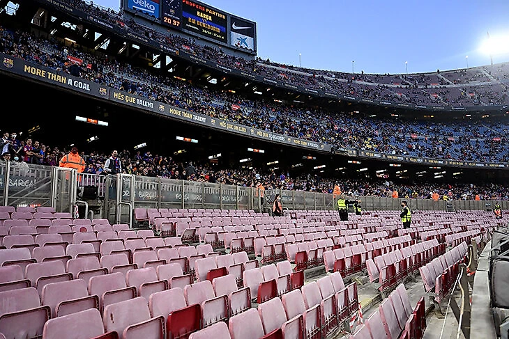 «Барселона» запретила посещать стадион членам фанатского движения Espai d’Animació, которые располагаются на специальной анимационной трибуне. Клуб просит оплатить штраф в 21 тысячу евро. Фанаты не согласны платить и протестуют. Трибуна пустует.