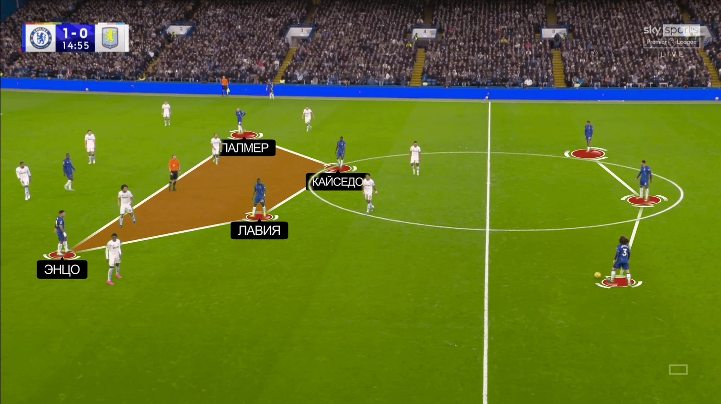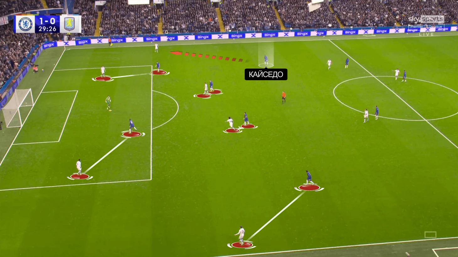 Матч с «Астон Виллой» выделяется на общем фоне. Мареска впервые со старта сезона придумал, как разместить в основе четверку Кайседо, Лавия, Палмер, Энцо. Именно трудности размещения перекрывали аргентинцу путь в старт. Чтобы продвинуть Фернандеса в основу, Мареска выпустил Кайседо в роли крайнего защитника при обороне.